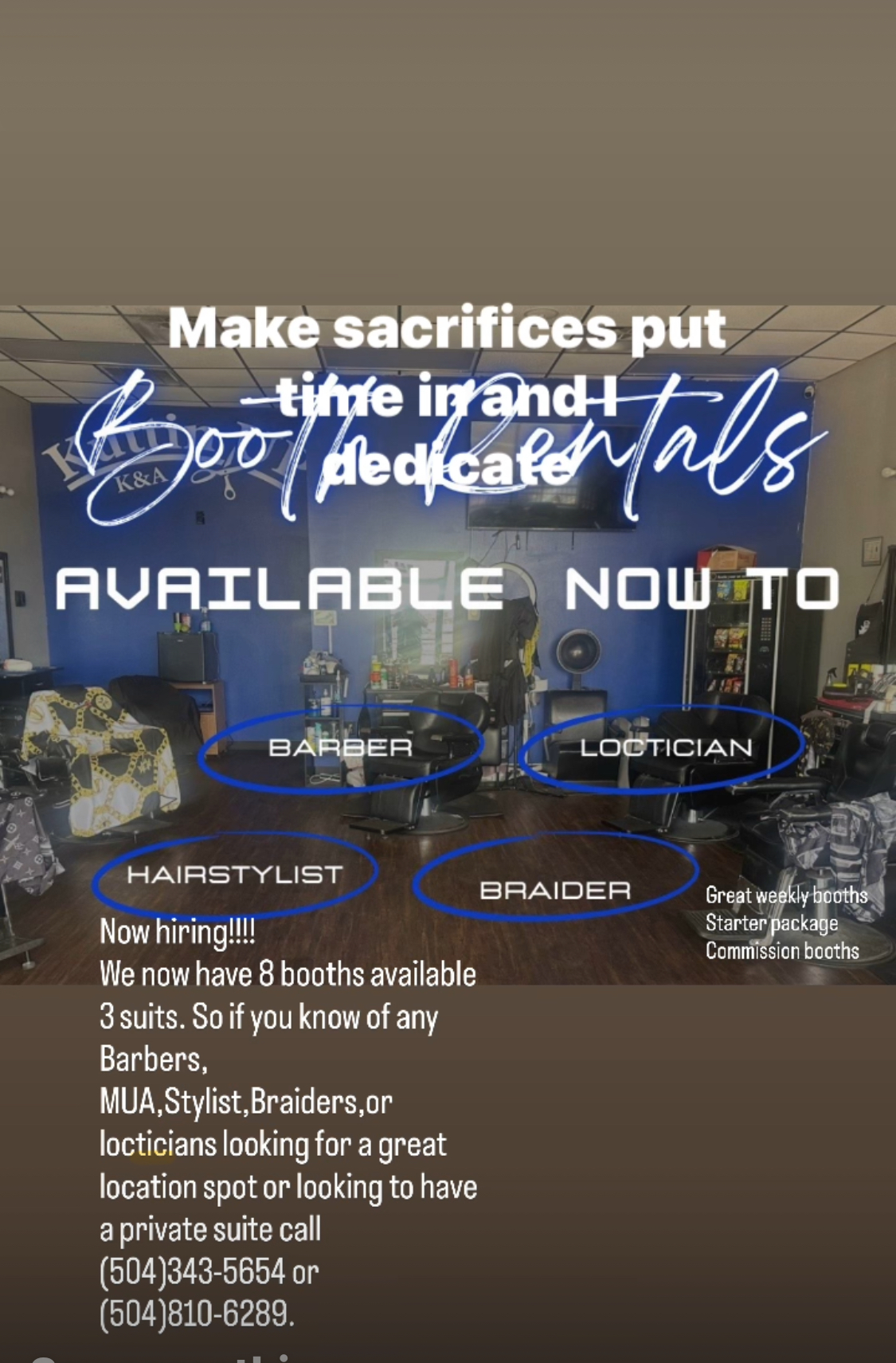 6 ft wide space $180 weekly or Starter package for new comers getting in the game