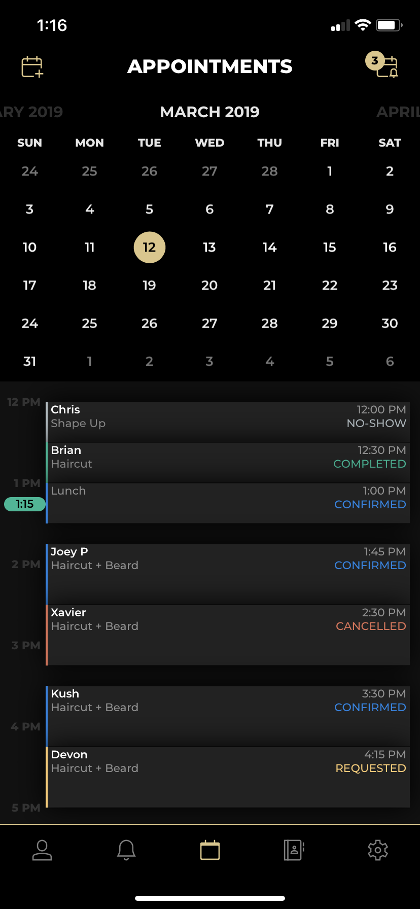 Barbers receive a daily reminder of how many appointments are scheduled that day.